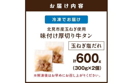 【予約:2025年12月から順次発送】北見市産玉ねぎ使用 味付け厚切り牛タン 玉ねぎ塩だれ 300g×2個 ( 肉 牛肉 たまねぎ タマネギ 焼肉 )【224-0034】