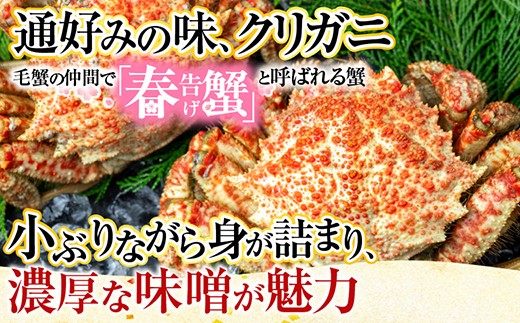 容量:【名称】クリガニ\\n【内容量】10~15尾(計2kg)\\n【主要原材料】クリガニ\\n【産地】根室産\\n【加工地】根室市\\n【保存方法】要冷蔵(5℃以下)\\n【賞味期限】出荷日より4日\\n【加工者】有限会社根室海鮮 北海道根室市月岡町1丁目12番地\\n【販売者】有限会社根室海鮮 北海道根室市月岡町1丁目12番地\\n