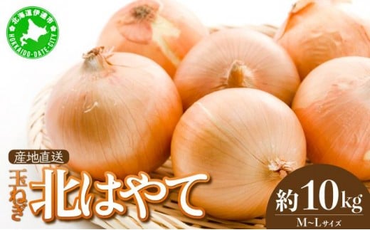 【オンライン決済限定商品】 北海道伊達市より、木須農園の「玉ねぎ 北はやて」です。 農園から産地直送! 美味しい北海道の野菜を、どうぞご賞味ください。 ◆北の大地が育んだ野菜 伊達市の「木須農園」で栽培された、たまねぎは、寒暖差により、野菜の甘みが際立っています。 暑さに弱い玉ネギは、北海道の気候に適しており、 その中でも早採りの北はやては、生で食べても辛みが少ない品種です。 ◆タマネギ(北はやて) 甘みとコクが特徴の『北はやて』。 生食でも美味しく、サラダやマリネにしても美味しいです。 加熱するとさらに甘みが引き立ちます。 ◆新鮮・採れたてを味わい尽くす 生のまま薄くスライスしてサラダやマリネに。 玉葱の甘さをより一層味わいたい方は、野菜炒めや肉じゃが、オニオンスープにもどうぞ。 《伊達野菜を堪能》 採れたてを約10kg(M-Lサイズ混合)農園からお届け。 伊達野菜を思う存分味わえます。 ご自宅用だけでなく、お裾分けにしても喜ばれます。 木須農園自慢の野菜を、皆様の食卓へ。 北海道が育んだ玉ねぎを、ぜひご堪能下さい! 【伊達市とは】 恵まれた環境を活かし、多品目の野菜を生産しています。 他地域よりもひと足早く収穫・出荷できる春早出し野菜や、 ハウス栽培で育てた冬野菜など、道内有数の農産地です。 ※画像はイメージです。 ※こちらの商品は、「オンライン決済限定商品」です。 ※到着後はお早めにお召し上がりください。 ※到着日の指定はお受けできません。 ※天候や生育状況により、出荷時期が前後する場合がございます。 ※ご不在等によりお受け取りいただけなかった場合の再送はいたしません。
