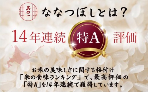 管内で生産されたお米の中でも高品質な物を選りすぐり、オリジナルブランド「伊達武者」として販売しています。 「ななつぼし」は、バランスに優れた味わいで、冷めてもおいしい品種です。 お弁当やお寿司に最適です。 ※画像はイメージです。 ※お届け後は、直射日光や高温多湿な場所を避け、冷暗所で保管の上1カ月程度でお召し上がりください。