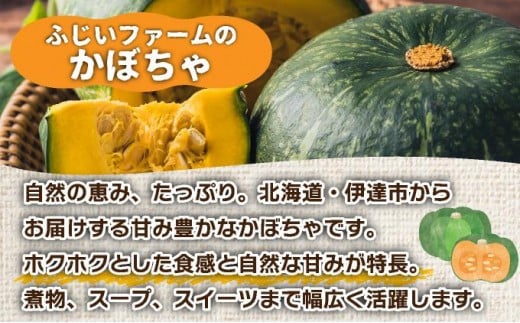 春が早く、秋が遅い。 北海道伊達市は道内有数の農産地として知られ、恵まれた環境を活かして多品目の質の良い野菜を生産しています。サイズが不揃いのため、訳ありとしていますが、味や品質は問題ございません。 【販売期間】 〜2025年10月15日迄 【賞味期限】 かぼちゃ(賞味期限10日)