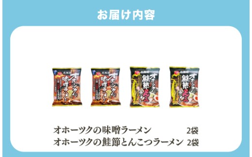 [№5930-0525]【3ヵ月定期便】オホーツクの味噌ラーメン オホーツクの鮭節とんこつラーメン各2袋 麺類 乾麺 湧別町 北海道