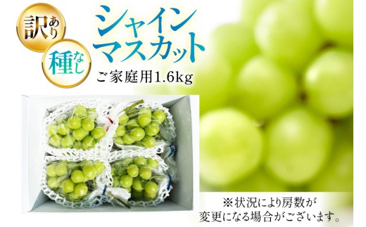 【期間限定発送】 シャインマスカット 訳あり 贅沢ボリューム セット 2~4房 1.6kg [Yamagenフルーツガーデンレコルト 山形県 高畠町 tk06ayt380005] ご家庭用 ぶどう ブドウ 葡萄 フルーツ 果物 くだもの 1.6キロ 甘い