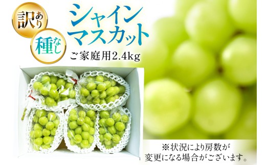 【期間限定発送】 シャインマスカット 訳あり 3~5房 約 2.4kg [Yamagenフルーツガーデンレコルト 山形県 高畠町 tk06ayt380000] ご家庭用 ぶどう ブドウ 葡萄 フルーツ 果物 くだもの 2.4キロ 甘い