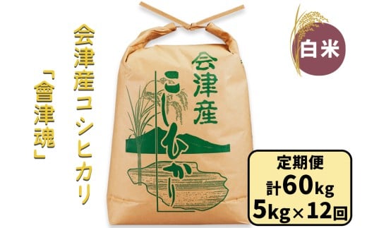 [定期便/12ヶ月] 会津産 コシヒカリ「會津魂」【白米】計60kg (5kg×12回)|令和7年産 2025年産 こしひかり 会津若松市 お米 米 こめ 白米 コメ 精米 新米 [1036]