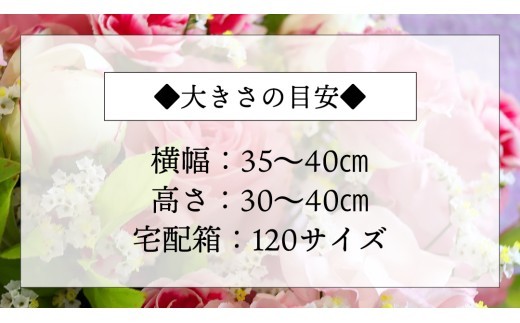 ◆敬老の日ギフト*季節のお花のフラワーアレンジメント【赤・ピンク系】のページです。 赤系かピンク系または赤とピンクをMIXのいずれかの花色で作成いたします。 ※9月中旬の発送となります。 敬老の日のアレンジメントですが、お届け日の指定はできかねますことを予めご了承ください。 受け取ったらそのまま飾れるアレンジメントですので、どなたでも気を遣わずに贈れるギフトです。 ※大きさの目安はあくまでも目安であり、使う花材によっては多少大きくなる場合がございますが、極端に小ぶりになることはございません。 【注意事項】 高温・多湿・直射日光を避けた場所へ飾ってください