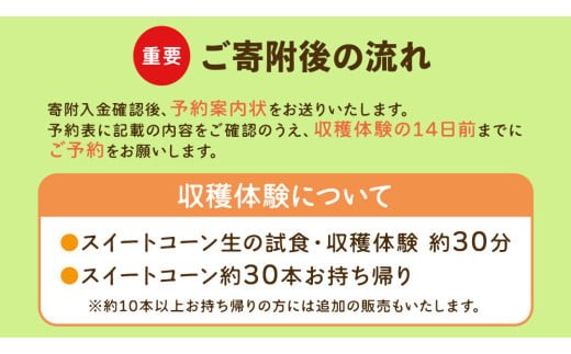 - スイートコーン収穫体験 約30分 スイートコーンの生の試食 スイートコーン約30本お持ち帰り