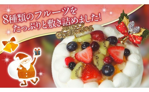 事業者応援の気持ちを込めて、毎年大人気のクリスマスケーキを特別寄附金額で先行受付いたします。 通常よりも早くお届けすることで、物流の混雑を避け、少しでもお求めやすい寄附金額を実現しました。 もちろん美味しさは通常品と遜色ございません。 クリスマスの準備を早めに始めたい方、少しでもお得にクリスマスケーキを手に入れたい方におすすめです。 8種類ものフルーツをたっぷり敷き詰めた生デコレーションケーキ。 ふわっふわのスポンジとコクのある生クリーム、そしていろいろなフルーツの味わいを楽しむことができます。 クリスマスケーキの定番であるいちごの生デコレーションケーキ。 今回は、そんな生デコレーションケーキに、いちごだけでなく、たくさんの種類のフルーツを入れたものをご紹介します。 どんな種類のフルーツが、どのようにこのケーキに入っているのでしょうか。 【工夫やこだわり】 豪華絢爛、煌びやかな姿のこのケーキ。 ケーキ上部にたくさんのフルーツを敷き詰めておりますが、カットすると生クリームとスポンジを2重に重ねており、 中の生クリーム部分にもフルーツが入っているのです。 そのフルーツとは、黄桃、洋梨、ぶどう、パイン、チェリー、いちご、キウイ、ブルーベリーで、 なんと8種類も入っているのです。 そんなたくさんの種類のフルーツを一度に味わえる贅沢なケーキなのです。 コクのあるあま~い生クリームとふわふわのスポンジ、歯で噛み締めることなく、舌の上で転がすだけで、 旨みがじんわり広がっていきます。 そこに8種類のフルーツの味わいが加わります。 非常に酸味の効いたものから、鋭い甘みを持つものまで、この生クリーム+スポンジとの相性は抜群です。 口いっぱいに広がる心地よい味わいを、ぜひご堪能ください。 【お召し上がり方法】 冷蔵庫で半日から1日程度解凍してお召し上がりください。 【菓子庵たちかわ】 創業100周年(大正12年創業)を迎えたお菓子屋さんです。 茨城県西地区・下館を中心に4店舗展開しております。 皆様のご来店を心よりお待ち申し上げます。 【注意事項】 冷凍でのお届けとなりますので、冷蔵庫で半日から1日程度解凍してお召し上がりください。 【保存方法】 冷凍保存 解凍後は冷蔵保存(10℃以下)