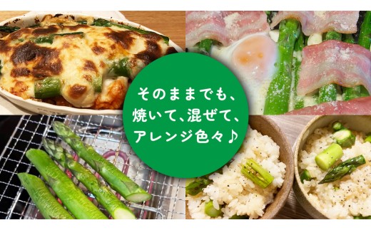 大自然の恵みで育った、茨城県産のアスパラガスです。 「甘み」「柔らかさ」にこだわり、愛情をこめて育てました。 新鮮なままお召し上がりいただきたく、採れたてをその日のうちに発送いたします。 到着後は、ぜひスライスして生の状態でお召し上がりください! 【関わっている人】 私たちがアスパラガスを育てるハウスは、後継者がいらっしゃらず、大切に育ててこられた方から引き継いだものです。その方が丹精込めて築き上げてきた畑と、アスパラガスへの情熱を受け継ぎ、妻と二人で、土づくりから日々の管理、そして収穫まで、一つひとつ心を込めて行っております。 【お礼の品に対する想い】 スーパーなどで見かけるアスパラガスは、収穫から3~4日ほど経過し、時間が経つほどに水分が失われ、硬く筋っぽくなってしまうことがあります。そのため、「アスパラガスを生で食べられる」ことをご存じない方も多くいらっしゃいます。 当農園から採れたての新鮮なアスパラガスが届きましたら、ぜひまずは生で、そのみずみずしい甘さとシャキシャキとした食感をお楽しみください! 【ふるさと納税でやりたい事や生まれた変化】 人口減少・過疎地域に悩む桜川市ですが、ふるさと納税を通して多くの方に桜川市の魅力を伝えられるようにしたいと思っております。 農業を通して若い方が桜川市で農業をやりたいと思っていただける機会づくりをしていきたいと思っています。 【おすすめのお召し上がり方】 ・塩を少しつけるとより◎ ・生ハムやクリームチーズとも相性ばっちり!サンドウィッチの具材にもどうぞ。 【保存方法】 冷蔵庫に立てて保存してください 【注意事項】 ・冷蔵庫に保管する際には少し濡らしたキッチンペーパーを根本に巻いて立てて保管ください。 ・4〜5日ほどは冷蔵庫で保管可能ですが、乾燥と共に美味しさも軽減します。できるだけお早めにお召し上がりください。