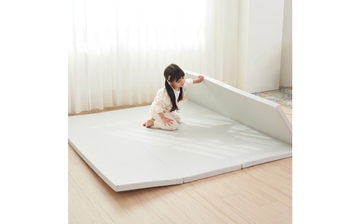 お子さまが寝返りを始める時期から、ハイハイや遊び場として活躍するプレイマットです。 ジャンプしたり転んだりしても安心のクッション性で、お子さまの安全をしっかりサポートします。 生地は抗菌・生活防水仕様で、よだれや食べこぼしもサッとひと拭き。広げた時に溝の無い構造でゴミがたまらず、日々のお手入れも簡単です。 折りたたむとコンパクト且つ軽量で収納も簡単。日中はリビングで広げ、夜はすっきり片付けることも可能です。 国内検査済・抗菌証明書付きで、ホルムアルデヒドなどの有害物質は未検出。安心してお使いいただけます。 サイズ:140×200×4cm(折りたたみ時:52×140×16cm) ■生産者の声 小さなお子さまと過ごす日々の中で、「マットに溝がありゴミがたまりやすい」「掃除がしにくい」「収納場所に困る」といったお悩みの声を多く耳にしてきました。 さらにコロナ禍を経て、見た目にも安心できる“清潔な環境づくり”への関心が高まったことも受けて、私たちはお子さまが安心して過ごせる場所をもっと快適に、そしてご家庭の負担を軽減する形で届けたいと考えました。 また、使い終えた後にも新たな価値を生むことを考え、リサイクルを前提とした循環型設計も取り入れています。 日々の育児を支える一品として、そして持続可能な未来へつながる製品として、心を込めてお届けいたします。