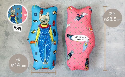 ねこのおもちゃ <mannine cat doll>-キャットニップ入り- ネコちゃんのストレス発散や遊び心を満たすためにぴったりのネコキッカーです。 ネコちゃんが好む香りのハーブ「キャットニップ」が入っています。 テキスタイルデザイナーManri Kishimotoさんによるファッションブランド『mannine』 とのコラボレーションで生まれた、おしゃれで贅沢な‟ごほうびキッカー”です。 抱えやすいサイズ感で、ネコちゃんが思う存分キックして遊ぶことができます。 枕にもできる形なので、ネコちゃんがくつろぐ場所やベッドに置くのもオススメです。 生地は天然素材のコットンを使用し、中綿には抗菌防臭加工のポリエステルを採用。 安心してご利用いただけます。日本で一つひとつ丁寧に手作業で製作しています。 表面と裏面で異なるデザインが楽しめる点も魅力の一つです。 お部屋のインテリアとしても映えるデザインなので、おしゃれな空間を 演出したい方にもおすすめです。 ネコ友さんへの贈り物としても喜ばれること間違いなし! おうちの中で狩りを楽しみたいネコちゃんに、ハッピーなひとときを届けてくれることでしょう。 ネコ好きさんにはたまらない!かわいい猫のネコキッカー『 mannine cat doll』は、 ネコちゃんにも、飼い主さんにも、満足していただける贅沢な商品です。