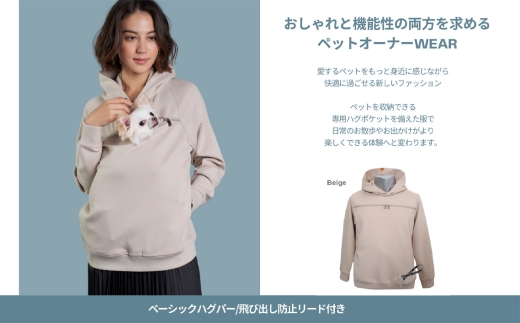 【ベージュ】HAGSTYLE(ハグパーカー) / ハグパー ハグスタイル ペット用品 ペット 犬 猫 お出かけ ファッション ユニセックス 男女兼用 ペットを入れるポケット ハグポケット パーカー 長袖 埼玉県 No.309