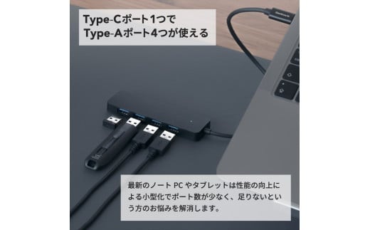 ●カラー:シルバー ●対応機器:USB Type-Cポート搭載のパソコン、スマートフォン、タブレット ※すべての端末、機器、充電器類での動作を保証するものではありません。 ●対応OS:Windows 11/10 (32bit/64bit)(OS標準ドライバにて動作) macOS 10.15~12.3(Intel/Apple Silicon) iPadOS 13~16 ●インターフェイス:アップストリーム:USB3.2 Gen1 Type-C プラグ ×1 ダウンストリーム:USB3.2 Gen1 Type-A ポート ×4 ●ケーブル長:約 30cm (コネクター部除く) ●データ転送速度(理論値):USB3.2 Gen1ポート接続時:5Gbps ※理論値は規格上の最高速度であり、実用上の転送速度を保証するものではありません。 ●電源方式:バスパワー ●USB供給電圧:+5V ●USB供給電流:全ポート合計最大1.5A ※デバイス側の電源供給が低い場合USB機器が正しく動作しないことがあります。 ●動作温度:0~30℃ ●サイズ:約 103.5(W) × 31.2(D) × 10.3(H) mm ●重量:約 44g ●保証期間:1年間
