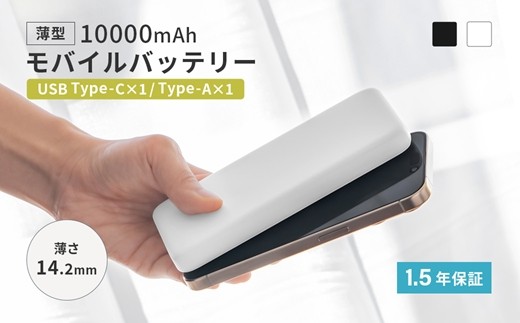 - 薄さ14.2mmの薄型モバイルバッテリーです。USB Type-CポートとUSBタイプAポートを使えば、2つの接続機器を同時に充電できます。安心の1.5年保証です。 ●対応機種:iPhone、iPad、スマートフォン、タブレット、Wi-Fiルーター、オーディオプレイヤー、ポータブルゲーム機、電子タバコ、ワイヤレススピーカー ※接続する機器に合わせた給電ケーブルをご用意ください。 【注意事項】 【飛行機への持ち込み】 多くの航空会社の機内持ち込み手荷物の規定を満たしておりますので、出張や海外旅行にご利用いただけます。 ※航空会社により機内持ち込み手荷物の規定が異なりますので、事前に各航空会社へお問い合わせ下さい。 ※AC充電器がご使用予定の国のコンセントに対応していれば、海外でも充電は可能です。 ▼リサイクル回収について 小型充電式電池のリサイクル活動推進のため、一般社団法人JBRCの会員となっております。 本製品がご不要になった場合は、JBRCに登録されている家電量販店/ホームセンター/自治体等にて回収が可能です。 ※詳しくはJBRCのWebサイトをご確認下さい。 『協力店・協力自治体』検索 | 小型充電式電池のリサイクル 一般社団法人JBRC ▼JBRCとは Japan Portable Rechargeable Battery Recycling Center 「資源の有効な利用の促進に関する法律」に基づき、モバイルバッテリー(小型充電式電池) の再資源化に取り組む一般社団法人です。 小型充電式電池のリサイクル | 一般社団法人JBRC
