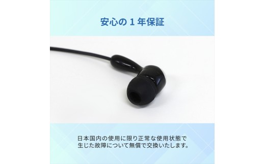 - ■ドライバー径:Φ10mm ■周波数特性:100Hz~10kHz ■インピーダンス:32Ω ■出力音圧レベル:91 ± 3dB ■接続端子: Φ3.5mm 4極 ※CTIA規格に対応しております。 ■ケーブル長:約 1m (分線 40cm) ■重量 (本体):約 17g ■付属品:イヤーピース(S、M、L 各1個) ※Mサイズはイヤホンに装着済みです。 ■保証期間:1年間
