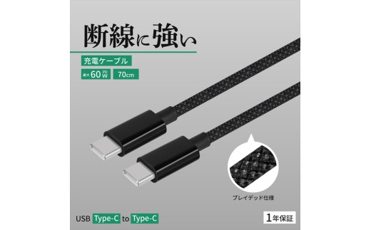 Owltech(オウルテック) 耐屈曲1万回 PD60W充電/データ転送 USB Type-C to USB Type-C ブレイデッドケーブル 0.7m OWL-CBN1CC7-BK ブラック【 神奈川県 海老名市 】