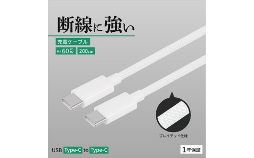 Owltech(オウルテック) 耐屈曲1万回 PD60W充電/データ転送 USB Type-C to USB Type-C ブレイデッドケーブル 2m OWL-CBN1CC20-WH ホワイト【 神奈川県 海老名市 】