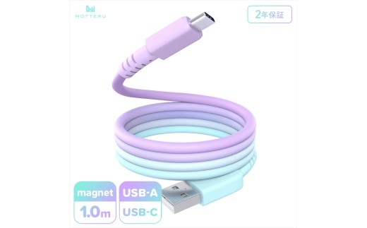 MOTTERU(モッテル) マグネットケーブル グラデーション USB-A to USB-C 1m 磁力でまとまる 急速充電 データ転送 2年保証 マーメイド (MOT-MGGAC100-MD) 【 神奈川県 海老名市 】