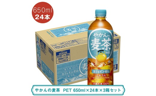 やかんの麦茶 PET 650ml×24本×3箱セット <配送不可地域:北海道・九州・沖縄・離島> | コカ・コーラ ペットボトル 1ケース(24本) お茶 麦茶 むぎ茶 飲料 ドリンク