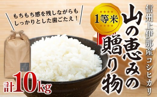 【令和7年産】信州産 コシヒカリ 1等米 「山の恵みの贈り物」 10kg(5kg×2袋) ( お米 コシヒカリ 白米 搗きたて米 低温貯蔵米 食品 ) 長野県 箕輪町 [№5675-1084]