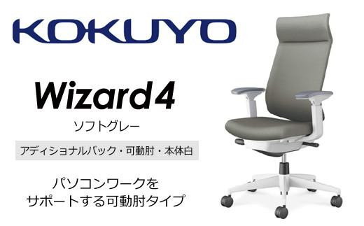 Mw02_コクヨチェアー ウィザード4(ソフトグレー・本体白)/可動肘・アディショナルバック・フローリング用(Vキャスター)/在宅ワーク・テレワークにお勧めの椅子