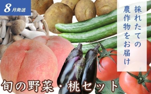 2回目は毎朝、農家さんが直売所に持ち込む旬の野菜と桃を詰め合わせてお届けします。