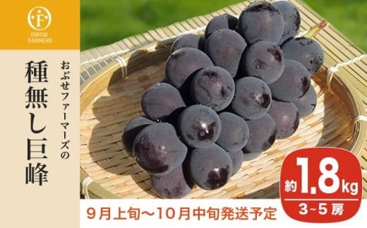 種無し巨峰 約1.8kg 3~5房 [おぶせファーマーズ] 果物 フルーツ ぶどう ブドウ 葡萄 冷蔵便 クール便 長野県産 信州産 令和7年産 【2025年9月上旬~10月中旬発送】 [F-25]