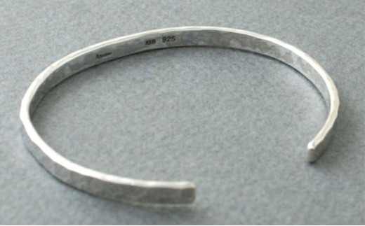 【配送不可:離島】 Ateaseのシルバー950バングルブレスレットK18スター付きレディースサイズ。 職人が手作業で地金から一打一打打ち込んで成形したシルバーバングルです。 キャスト製法ではなく、鍛造の技術をいかした1点モノ技法です。 そのため強度もあり、折れにくい製法です。 タタキ面はそれぞれ微妙に異なるのでご了承ください。 魅力…どんなスタイルにあるシンプルで身に着けやすいデザインです。 詳細サイズ…通常レディースサイズ。内径160mm程度(切れ目含む)。切れ目24mm程度。地金厚み1.8mm程度。幅4mm程度。手首の一番太い骨のあたりで外周14cm前後の方推奨サイズです。 モデル着用:身長160cm体重50kg。手首のくるぶし骨の一番太いところで外周14cm程度です。手首のくるぶし骨の一番太いところで外周13.5cmから14.5cm程度の方であれば推奨サイズです。 ※画像はイメージです。 ※離島へのお届けはできません。 ※上記のエリアからの申し込みは返礼品の手配が出来ないため、「キャンセル」または「寄附のみ」とさせていただきます。予めご了承ください。 ※商品は寄附金入金確認後、最大60日程度で発送します。 ※タタキ面はそれぞれ微妙に異なるのでご了承ください。 ※曲げ伸ばしを繰り返すと金属疲労で折れる可能性があります。 ※基本的にはバングルの隙間の空いている所から手首の一番細いところを通して、すこしゆとりある着用感でお楽しみください。 ※お手入れ方法…銀製品は酸化しますので、黒ずみが出てきたらシルバー磨きクロスなどの布やポリッシュクリームなどで磨いてください。 ※収納方法…汗をかいた場合などは、ティッシュなどで拭いてから保管ください。 事業者:有限会社ノバック