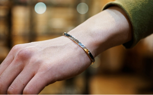 ☆離島への出荷はできません。 刀と同じ鍛造製法で、銀の延べ棒を熱し、タタキ、そして成形するという工程を、何度も何度も繰り返します。 生産の際に出た銀の削りカスなどを分析精製してあらたに銀の角棒をつくりそこからバングルを作りました。 まさにSDGsなバングル。 割金の銅など以外の銀はほぼ99.9%リサイクルシルバーになります。 銀の棒を熱しては叩きを繰り返し製作された一点物の叩き腕輪。 独特の存在感、着けやすいサイズ感に落とし込みました。 ※画像はイメージです。 ※離島へのお届けはできません。 ※上記のエリアからの申し込みは返礼品の手配が出来ないため、「キャンセル」または「寄附のみ」とさせていただきます。予めご了承ください。 事業者:有限会社ノバック