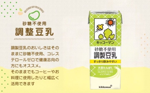すっきりおいしい!“砂糖不使用”の調製豆乳です。 調製豆乳のおいしさはそのままに、砂糖を使用せず、大豆のやさしい甘みが感じられます。 そのまま飲むのはもちろん、コーヒーや紅茶と合わせたり、料理に使用したりと、広くお楽しみいただけます。 ※画像はイメージです。 ※離島へのお届けはできません。 ※2週間~1か月程度でお届け予定です。 ※上記のエリアからの申し込みは返礼品の手配が出来ないため、「キャンセル」または「寄附のみ」とさせていただきます。予めご了承ください。 キッコーマン 豆乳 無調整 無調整豆乳 調整 調製 調製豆乳 調整豆乳 紙パック 高評価 ソイミルク 植物性ミルク トクホ 特保 特定保健用食品 常温 常温保存 飲み物 飲料 ドリンク コレステロール 健康 美容 朝食 ヘルシー たんぱく質 タンパク質 蛋白質 ソイミルク健康 ソイミルクたんぱく質 ソイミルク朝食 飲料健康 健康飲料 大豆 イソフラボン アレンジ アレンジレシピ ちょい足し 豆乳鍋 ソイラテ