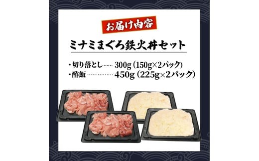 容量:●ミナミまぐろ鉄火丼セット\\n・切り落とし 300g(150g×2パック)\\n・酢飯450g(225g×2パック)