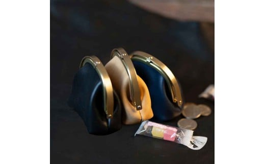 【soul;solid】ワンタッチ真鍮がま口ミニポーチ 色:プエブロレザー/ナチュラル