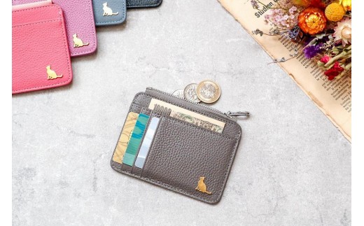 ミニ財布 コンパクト財布 小さい財布 薄い財布 薄型財布 本革 猫 ねこ 軽い レザー