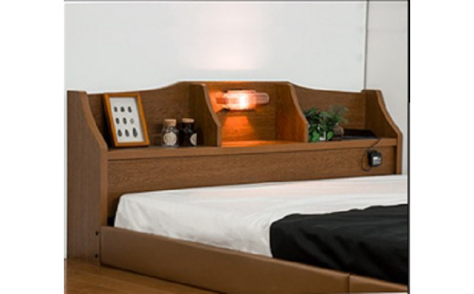 【組立サービス付】320 セミダブルサイズ 棚照明コンセント付きデザインフロアベッド 国産ポケットコイルマットレス(108618)付(ブラウン)(1461)
