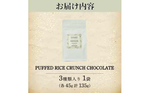 訳あり PUFFED RICE CRUNCH CHOCOLATE 3種 135g 詰め合わせ プレーン ほうじ茶 生姜 高級 リッチ チョコ チョコレート クランチチョコ チョコクランチ カカオ バレンタイン クリスマス ギフト 食べ比べ 丹後米 玄米 米 ポン菓子 ぽん菓子 ほうじ茶 しょうが 与謝野 京丹後 宮津 丹後 京都