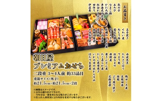 おせち 2026 朝日屋プレミアムおせち 二段重 2~3人前 2026年1月1日お届け おせち料理 冷蔵 重箱 人気 おすすめ 正月 お正月 新年 お祝い 縁起物 グルメ ご自宅用 京都 朝日屋 先行受付 先行予約 年末配送 元旦お届け 老舗おせち 冷蔵おせち おせち2026 おせち料理2026