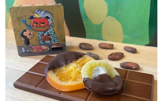 店主の彼は今、『カカオ豆からチョコレートを作る』その全工程を、大阪・香里園の小さな店内で行っています。\\n\\n《CHOCO FORESTのこだわり》\\n- 浅煎りで焙煎、ブレンドしないことで素材を最大限に活かす。\\n- 自分の表現したい素材の香りや味わいを出すためにも焙煎から携わる。\\n- 一枚一枚に土地の記憶を詰め、そのカカオのストーリを伝える。\\n- アイデア次第で無限に広がるチョコレートの魅力を伝える。\\n- ユニークなアイデアから作るフレーバーバー。\\n- スイーツに合わせたカカオ (産地別) を使用する焼き菓子やドリンク。\\n- 見た目にも楽しめて、文化や感情を伝えるパッケージ。\\n\\n「ハイカカオ=苦い」のイメージがガラッと変わる、カカオ豆とお砂糖だけで作った、純粋で奥深いチョコレート。\\n素材を楽しむクラフトチョコレート。\\n\\nムチムチ食感が癖になる、ドライフルーツに自家製チョコレートをディップ。\\nフルーツの酸味とダークチョコレートの相性はバッチリ!\\n\\n見た時、手に取ったときのワクワク。\\n中のチョコレートを食べるときの、幸せの一時。\\n食べた後は、小物入れや、飾りとしても。\\nずーっと楽しめる旅缶シリーズはギフトにはもちろん、自分用にも!\\n\\nコイン状のチョコレート、またはドライフルーツのチョコレートディップが1缶に入ります。\\n上記2種をランダムにお入れします。ご指定はできません。\\nご理解の程、よろしくお願いいたします。\\n\\nお受け取り後、自身で中身を入れ替えてもらうことは可能です。(缶にシールを貼り付けないためため)