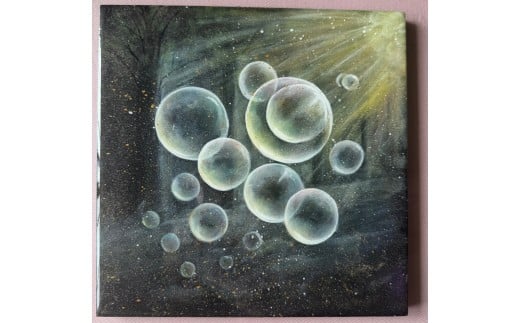 絵画手描き1点もの『シャボン玉』(レジン仕上) インテリア【no.0036】|絵画 手書き インテリア オリジナル作品 [1195]