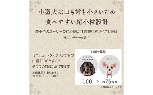 ●口の小さなワンちゃんでも食べやすい超小粒タイプ ※粒の大きさ約40% (グラン・デリふっくら仕立て全成長段階用比) ●国産のお肉たっぷり、美味しいふっくら仕立てのグルメフード ●角切りビーフ粒・ささみ入りふんわり粒・ささみ入り大豆フレーク入り ●栄養素をバランス良く摂取できる総合栄養食 ●健康維持に必要なオメガ6&3脂肪酸をバランス良く調整 ※画像はイメージです。 ※写真とパッケージデザインが異なる場合があります。