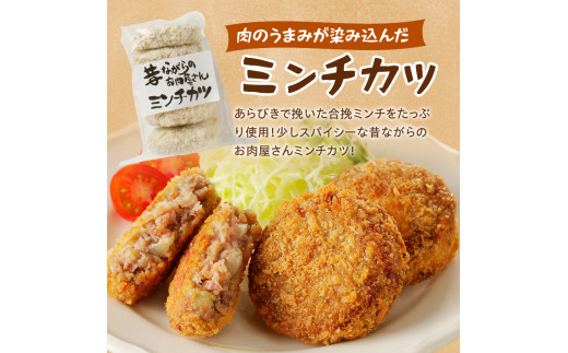 ●ミンチカツ\\nあらびきで挽いた合挽ミンチをたっぷり使用!少しスパイシーな昔ながらのお肉屋さんミンチカツ!\\n\\n【とことんまでこだわったお肉屋さん】\\n=加古川和牛の品評会で最優秀賞をはじめ多くの受賞歴=\\n肉のヒライは兵庫県加古川市にある小さなお店です。\\n昔ながらのお肉屋さんのコロッケや手づくりの自家製ハム・ウインナー。\\n車で1分程度の場所にある加古川食肉センターから仕入れる上質な牛肉と新鮮なホルモン。\\nそして自社牧場で飼育する但馬牛・神戸牛。\\n\\n心を込めてつくる、昔ながらの美味しいお肉をお届けいたします。\\n\\n※画像はイメージです。\\n\\n【原材料】\\n牛・豚・玉葱・衣(パン粉・小麦粉)・調味料・香辛料\\n\\n【保存方法】\\n冷凍\\n\\n【注意事項】\\n※開封後、解凍後はお早めにお召し上がり下さい。\\n※12月お申込み分は、1月以降に順次発送。\\n\\n【地場産品類型】\\n3\\n\\n【類型該当理由】\\n原材料を仕入れ、市内で下処理、加工、味付けの調理をすることで付加価値が生じているため。\\n\\n【注目キーワード】\\nミンチカツ 惣菜 揚げ物 おかず 手造り