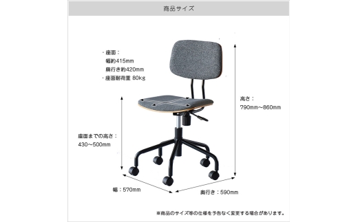 背板と座面のウラにオーク材を取り入れた、シンプルながら温かみを感じるデスクチェア 座面は緩やかなカーブ形状をとっており、曲線フォルムに沿って体がフィットし、座り心地も最適です。 また、ガス圧昇降で43~50cmの間で座面高が調節でき、男女兼用でご使用いただけます。 カラーはダークグレーとライトグレーの2色展開です。 ※画像はイメージです。 ※本御礼品はデスクチェアのみであり、イメージ画像上のその他家具や装飾品等の雑貨は含まれておりません。