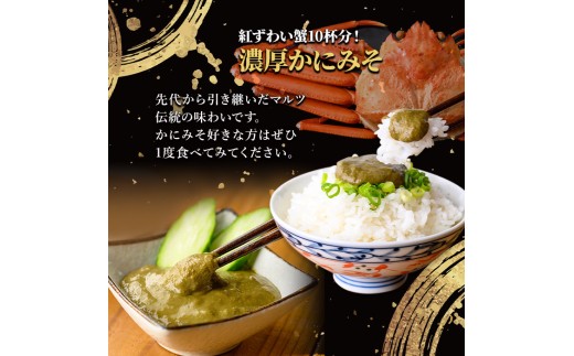 蟹屋のかに出汁醤油(2本) 【sm-AL025】【マルツ】  私たちは、長年、境港の地で蟹と向き合い、その美味しさを知り尽くしています。\\nボイルされた蟹から溢れ出る、濃厚な旨みをたっぷりと含んだゆで汁。\\nそれは、決して無駄にはできない、自然の恵みそのものです。\\n「蟹屋のかに出汁醤油」はこのゆで汁をベースに、老舗醤油屋の熟練の職人が丹精込めた醤油とブレンド。\\n蟹の風味と香り、かつおや昆布から出た旨味が合わさった他では決して味わえない出汁醤油です。\\n\\n「もったいない」から生まれた、極上の味わい。\\n蟹をボイルする際に出るゆで汁には、蟹の旨みがたっぷりと溶け出しています。\\nこれまで、その多くは捨てられてきました。\\nしかし、「この豊かな旨みを活かせないだろうか?」という想いから、「蟹屋のかに出汁醤油」は生まれました。\\n自然の恵みを最大限に活かした、サステナブルな製法で作られた、特別な1本です。\\n\\nいつもの料理が、まるで料亭の味に。\\nこの1本があれば、いつもの家庭料理が、本格的な味わいに変わります。\\n\\n卵かけご飯に数滴垂らすだけで… 蟹の豊かな風味が、朝の食卓を贅沢な時間に。\\n冷奴にかければ… 素材本来の味を引き立て、上品な味わいに。\\n煮物や炒め物の隠し味に… 料理に深みとコクを与え、プロの味に近づけます。\\nうどんや蕎麦のつゆ、丼もの、炊き込みご飯など、様々な料理にお使いいただけます。\\n\\n【保存方法】\\n常温\\n\\n【配送不可期間】\\n12月10日~1月15日は除く\\n\\n【地産理由】\\n本返礼品は、原材料のうち、区域内で茹でた蟹の茹で汁が最も重量を占めており、当該返礼品の付加価値の大半を占めております。\\n\\nふるさと納税 境港市 特産品 魚介 海鮮 海の幸 カニ かに 蟹 ボイル ゆで汁 かつお 昆布 調味料 卵かけご飯 冷奴 煮物 炒め物 うどん 蕎麦のつゆ 丼もの 炊き込みご飯 容量:蟹屋のかに出汁醤油:360ml×2本 申込:~ 2026/03/20 21:00 配送:入金確認後1ヶ月以内の発送 ※配送日の指定は出来かねますので、ご了承くださいませ。 ※お申込みが集中した場合や、年末年始(11月~翌年2月)を含む繁忙期には、通常よりもお届けまでにお時間をいただく場合がございます。あらかじめご了承ください。 アレルギー表示:かに 蟹屋の濃厚かにみそソース(2個)【sm-AL015】【マルツ】  境港産紅ずわい蟹を使用し、マルツの先代から受け継いだ製法で作り出す保存料無添加のカニみそとイタリア古来のレシピで作り出すバーニャカウダソースが見事に融合したイタリアン風の万能ソースです。\\n野菜をディップしても良し、パスタにかけても良し、パンに塗っても良し。\\nラーメンやスープにちょい足ししても蟹の風味や香りが広がる本格派に大変身です。\\n本場イタリアで修行した、イタリアンレストランシェフの監修の元、製造しています。\\nレストランで食べるような本格的な味わいをご家庭で楽しめます。\\nぜひ色んな食べ方を試してみてください。\\n\\n【保存方法】\\n常温\\n\\n【注意事項】\\n※安定剤・乳化剤を使用していないため、油分が分離することがありますが、品質には問題ありません。\\n※よく混ぜてお召し上がりください。\\n\\n【地産理由】\\n原材料の主要な部分(紅ズワイガニ)は区域内で水揚げされたものを100%使用しております。\\n\\nふるさと納税 境港市 特産品 魚介 海鮮 海の幸 カニ かに 蟹 紅ズワイガニ 蟹味噌 ソース 濃厚 バーニャカウダ ディップ パスタ パン ラーメン スープ イタリアン風 容量:蟹屋の濃厚かにみそソース:120g×2個 申込:~2026/03/20 配送:入金確認後1ヶ月以内の発送 配送日の指定は出来かねますので、ご了承くださいませ。 ※お申込みが集中した場合や、年末年始(11月~翌年2月)を含む繁忙期には、通常よりもお届けまでにお時間をいただく場合がございます。あらかじめご了承ください。 アレルギー表示:かに 蟹屋の純正かにみそ(2個)【sm-AL016】【マルツ】  紅ずわい蟹の濃厚なカニみそ本来の味を楽しんでもらうため、保存料無添加にこだわった境港産紅ずわい蟹のかにみそのみを使用した手作りのかにみそです。\\n先代から引き継いだマルツ伝統の味わいです。\\nお酒のおつまみとしてそのまま召し上がって頂いても美味しいですし、ご飯にのせたり、パスタやグラタンなどの料理にもピッタリです。\\n1個あたり紅ずわい蟹を10杯程度使用した濃厚で贅沢なかにみそです。\\nかにみそ好きな方はぜひ1度食べてみてください。\\n\\n【保存方法】\\n冷凍\\n\\n【注意事項】\\n※冷凍商品ですが解凍後は冷蔵庫に保管しお早目にお召し上がりください。\\n\\n【地産理由】\\n原材料の主要な部分(紅ズワイガニ)は区域内で水揚げされたものを100%使用しております\\n\\nふるさと納税 境港市 特産品 魚介 海鮮 海の幸 カニ かに 蟹 紅ズワイガニ 蟹味噌 ソース 濃厚 お酒のおつまみ ご飯のおとも パスタ グラタン 容量:蟹屋の純正かにみそ:70g×2個 申込:~2026/03/20 配送:入金確認後1ヶ月以内の発送 配送日の指定は出来かねま