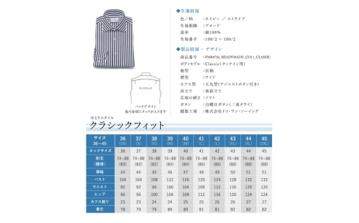 土井縫工所の既製品シャツ【クラシックフィット】100/2 ネイビーストライプブロード ワイドカラーシャツ(FM84736) XS_36
