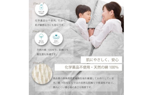 「Drダニゼロック」はヤマセイ独自の製法でダニ対策にこだわって作り上げた、通気性・吸湿性に優れた快適な寝具です。特許製法を用い、熟練の職人が1点1点丁寧に仕上げた寝具は、生きたダニを1匹も通しません。 最大の特長は、隙間の詰まった特殊高密度織物と、ヤマセイ独自の縫製技術。針目を通常縫製の約2倍の細かさにし、さらに二重に縫製することで、ダニの侵入経路となる針穴をなくしています。この特殊製法により、生きているダニの侵入を防ぎ、アレルギー対策にも優れた効果を発揮します。 さらに、肌に優しい綿100%素材でありながらホコリが出にくく、花粉も手で払うだけで低減するため、小さなお子様や、ハウスダストに敏感な方にも安心してご使用いただけます。 本製品は敷き布団カバーです。ご使用の敷き布団に合わせて装着してお使いください。 毎日の眠りに、清潔・安心・心地よさを。まごころを込めて、最高品質の防ダニ布団をお届けします。 配送不可地域:北海道・沖縄・離島(一部除く) 事業者名:ヤマセイ株式会社 連絡先:0120-236-007 関連キーワード:寝具 日用品 人気 おすすめ 送料無料