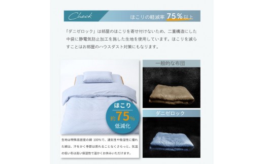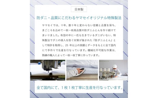 「Drダニゼロック」はヤマセイ独自の製法でダニ対策にこだわって作り上げた、通気性・吸湿性に優れた快適な寝具です。特許製法を用い、熟練の職人が1点1点丁寧に仕上げた寝具は、生きたダニを1匹も通しません。 最大の特長は、隙間の詰まった特殊高密度織物と、ヤマセイ独自の縫製技術。針目を通常縫製の約2倍の細かさにし、さらに二重に縫製することで、ダニの侵入経路となる針穴をなくしています。この特殊製法により、生きているダニの侵入を防ぎ、アレルギー対策にも優れた効果を発揮します。 さらに、肌に優しい綿100%素材でありながらホコリが出にくく、花粉も手で払うだけで低減するため、小さなお子様や、ハウスダストに敏感な方にも安心してご使用いただけます。 本製品は敷き布団カバーです。ご使用の敷き布団に合わせて装着してお使いください。 毎日の眠りに、清潔・安心・心地よさを。まごころを込めて、最高品質の防ダニ布団をお届けします。 配送不可地域:北海道・沖縄・離島(一部除く) 事業者名:ヤマセイ株式会社 連絡先:0120-236-007 関連キーワード:寝具 日用品 人気 おすすめ 送料無料
