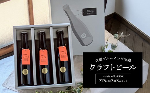 久福ブルーイング本島 クラフトビール オリジナルギフトBOX 375ml × 3種 3本入 クラフト ビール オリジナル ギフト 地ビール アルコール 季節のビール 炭酸 無濾過 熟成 発酵 晩酌 セット プレゼント 贈答 お取り寄せ 冷蔵 香川県 丸亀市 久福 BEER