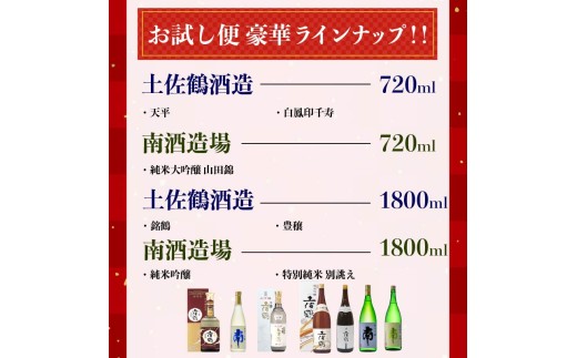 【名蔵の日本酒を厳選】日本酒おためし便 第3弾 贅沢おためし便 日本酒 おまかせ 地酒 1本 厳選 酒 土佐鶴酒造 南酒造 お試し お楽しみ 常温 冷酒 熱燗 ぬる燗 山田錦 大吟醸 純米大吟醸 特別純米 さけ おさけ お任せ お酒 高知県 安田町 YS-0003