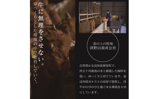 高知県と愛媛県の県境にある「梼原町」、雲の上と称されるほど標高が高い土地で、南国土佐の海のイメージとはまた違った、空高く山々の風景が楽しめる自然豊かな静かな町です。 四国カルストの雄大な高原を活用し、夏は牛たちを放牧し健康で味わい深い高知県産和牛の生産を行っております。生産される和牛肉については、風味豊かで、特に美味しさの指標とさせる「オレイン酸」については、高知県枝肉共励会で表彰されるなど高い評価を受けております。また、和牛生産を行うにあたり、発生する「牛ふん堆肥」についても、有機成分を多く含み、地域の耕種農家、また県外のお客様にご利用いただき、ご好評を頂いたおると共に、当社が目指す「持続可能な畜産経営」の形となっております。 当社で生産される和牛については、黒毛和種である「四国カルスト産ゆすはら牛」と、 高知県特産品である幻の和牛「土佐あかうし」の2品種を生産しております。高知県産和牛にこだわって飼育管理をしており、生産されるほぼすべての牛が「高知県生まれ高知県育ち」の和牛になります。管理方法については、自社の母牛から生まれた子牛を1頭1頭、人の手でミルクを与え、長年厳選した飼料を性別に分けて給与しながら、牛の健康に注意しながら丁寧に管理をしております。また、夏の期間は、「四国カルスト高原」の広大な放牧場で母牛、肉用牛(一部)を放牧管理しており、育て上げた和牛は、高知県内で加工され、高知県内をはじめ全国のお客様にご利用いただいております。