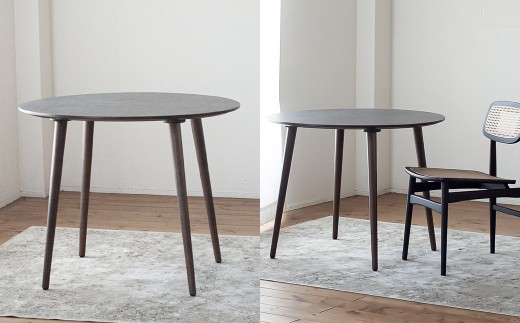 モルタル調メラミン材のラウンドダイニング (70cm) 木部ウォルナット色 / テーブル 机 ラウンドテーブル 丸テーブル インテリア 家具 ダイニング 日本製 福岡県 柳川市