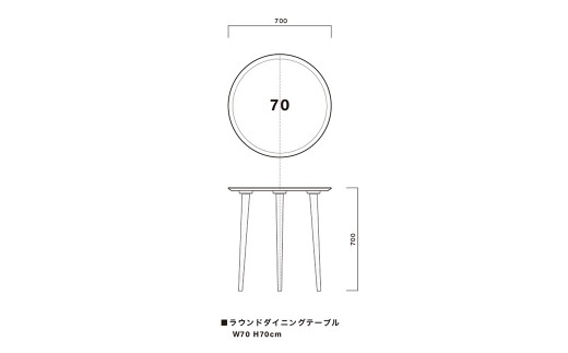 - 直径 :70cm 高さ :70cm 天厚 :2cm 重量 :8.5kg 足径 :根元径5cm・足先径2.4cm
